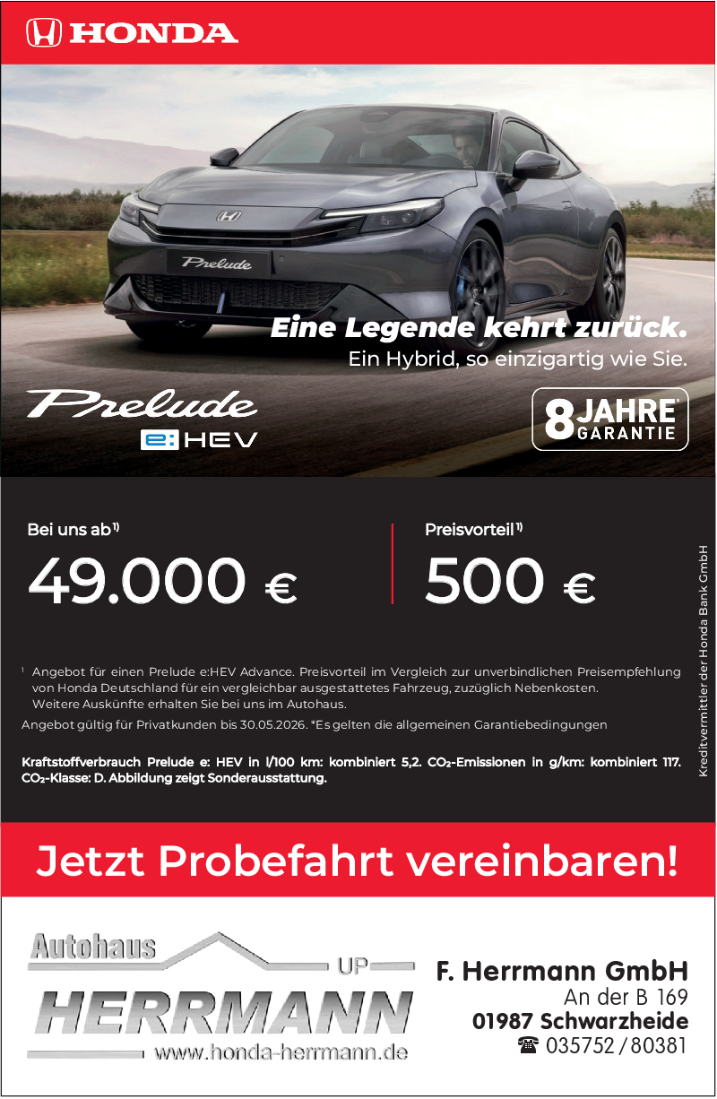 Auch der einladende Innenraum ist einem Segelflugzeug nachempfunden – in diesem Fall der Cockpit-Gestaltung. Komfort und Funktionalität verbinden sich nahtlos mit hochwertigen Materialien, während die Honda SENSING Technologien für ein hohes Maß an Sicherheit und Fahrerunterstützung sorgen. „Der Name Prelude steht seit jeher für fortschrittliche und innovative Technik - und die neueste Modellgeneration ist keine Ausnahme. Mit seinem eleganten Design, dem innovativen Honda S+ Shift und dem hochmodernen Vollhybridantrieb werden Fahrer und Passagiere gar nicht mehr aus dem Prelude aussteigen wollen“, sagt Hans de Jaeger, Senior Vice President, Honda Motor Europe.