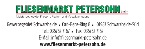 Für die Teilnahme am Feuerabend am 6. November ab 18 Uhr bittet der Fliesenmarkt Petersohn um eine formlose Anmeldung per Telefon, Fax oder E-Mail.