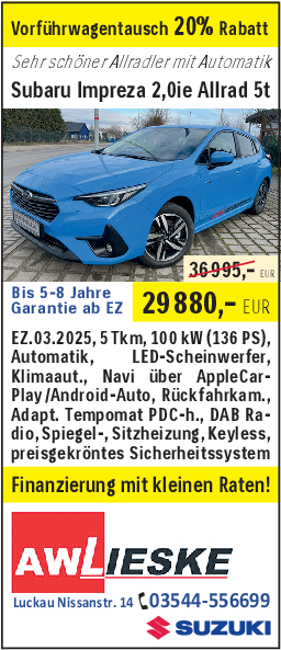 Alles soll vor dem Eröffnungstag am 21. März eingerichtet sein. Aktuell zieht das Lager um. Im neuen Sozialbereich wird die neue Gastroküche eingebaut. Der helle und freundliche Aufenthaltsraum, dient in Zukunft nicht nur als Speiseraum, sondern auch für Schulungszwecke. Die Mitarbeiter vom AWL Lieske-Team sollen sich wohlfühlen. In den kommenden Tagen wird die Werkstatt weiter eingerichtet, mit neuen Hebebühnen und dem entsprechenden Spezial-Werkzeug für Elektroautos. Sicherheit wird beim AWL-Team großgeschrieben, deshalb entschieden sich die beiden Brüder Mike und Andre Lieske für diese Investition in die Zukunft. Dankbar sind die beiden für die Unterstützung und Förderung durch die EU. „Das hilft uns moderne Arbeitsplätze zu bauen und zu sichern“, so Mike Lieske. „Das hätten wir allein kaum stemmen können. Es gibt sehr viele gute Dinge, über die man auch mal sprechen kann und sollte“, ergänzt Andre Lieske. Am 21. März stellt das AWL Team auch einen neuen vollelektrischen Suzuki vor und ab Juni folgen gleich drei neue vollelektrische Subaru. pm