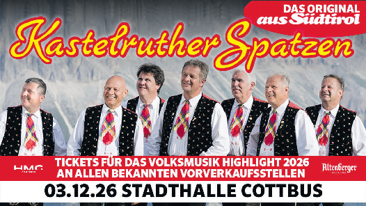 Kultikk verlost 3 x 2 Tickets für das Konzert „Die Oberkrainer kommen – Musik ist unser Leben“ am 17. Oktober 2026 in der Stadthalle Calau. Einlass ist ab 14 Uhr, Konzertbeginn um 15 Uhr.