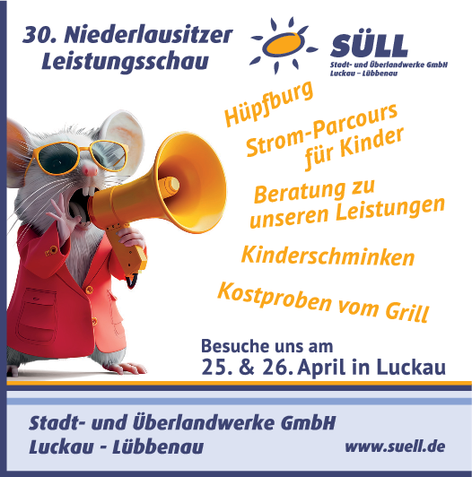 Den Organisatoren und allen Mitwirkenden der diesjährigen Niederlausitzer Leistungsschau wünsche ich eine erfolgreiche Messe und den Besucherinnen und Besuchern schöne und auch anregende Stunden in Luckau.